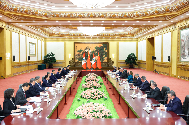 习近平指出,中国和秘鲁都是文明古国,两国友谊源远流长,人民友好深入人心。秘鲁是最早同新中国建交、最早同中国建立全面战略伙伴关系的拉美国家之一,也是最早同中国签署一揽子自由贸易协定的拉美国家。近年来,在双方共同努力下,中秘各领域合作取得丰硕成果,中国企业在秘鲁重大合作项目为秘鲁经济发展、民生改善发挥了重要作用。中方高度重视发展中秘关系,愿同秘方夯实政治互信,深化务实合作,促进文明互鉴,加强多边协作,推动中秘全面战略伙伴关系不断迈上新台阶。