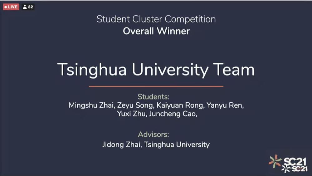 据清华大学网站消息,19日凌晨,国际大学生超算竞赛(SC21)结果公布,由清华大学计算机系6名本科生组建的超算团队夺得总冠军,实现SC竞赛四连冠。