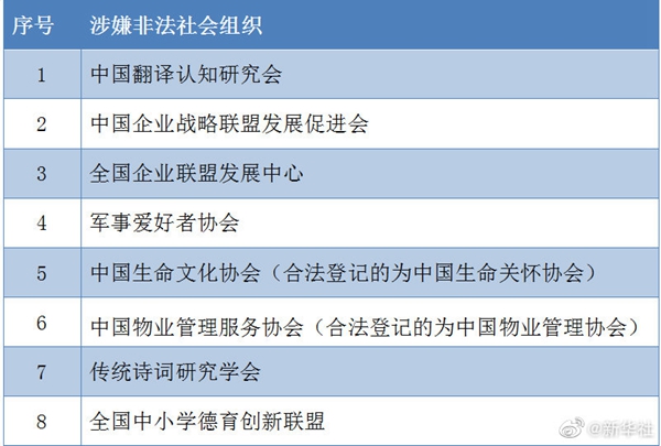 全国中小学德育创新联盟等8家涉嫌非法社会组织名单公布