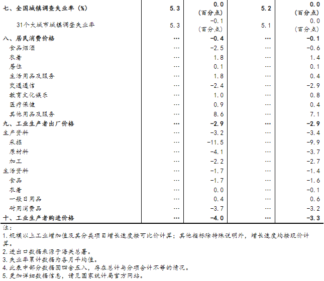 (1)规模以上工业增加值及其分类项目增长速度按可比价计算,为实际增长速度;其他指标除特殊说明外,均按现价计算,为名义增长速度。
