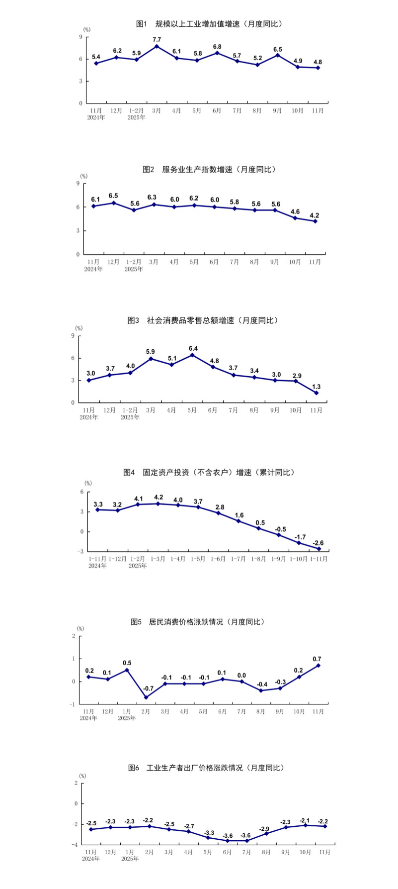 根据第五次全国经济普查结果对社会消费品零售总额、网上零售额数据进行了修订,2025年社会消费品零售总额、网上零售额相关指标月度增速按照可比口径计算。