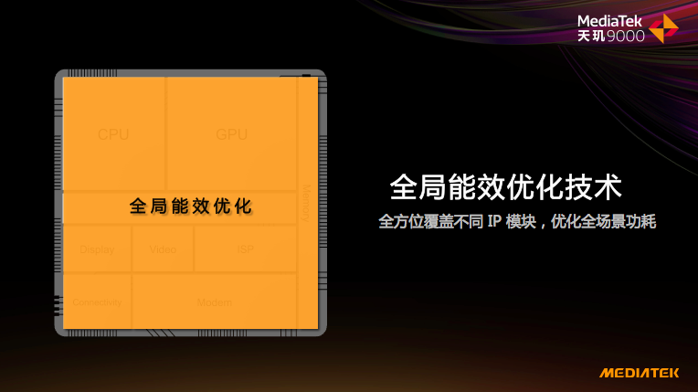 软件方面,联发科推出了自研的全局能效优化技术,可以全方位覆盖不同IP模块,优化全场景功耗,该技术不仅大幅降低天玑9000的功耗,还为了饱受功耗困扰的行业带来了极大的启发。