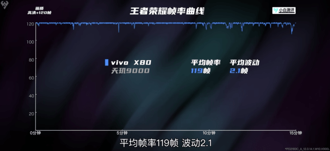 在高清画质、120帧模式的《王者荣耀》中,vivo X80平均帧率也是接近满帧,游戏体验可谓是丝滑流畅。