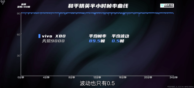 在流畅画质90帧《和平精英》的测试项目中,vivo X80平均帧率达到89.5帧,波动仅为0.5帧,满帧又十分稳定,功耗也相对更低。