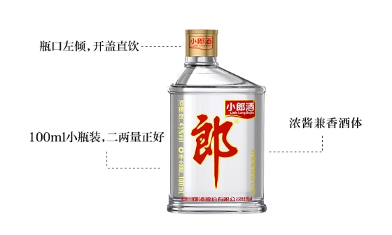 小郎酒采用专利技术酿造,取浓香之醇,融酱香之雅,带来有滋有味的口感体验。100mL小瓶装很好地诠释了“小瓶装,量正好”,瓶口左倾,开盖直饮,提供了一种多元化的饮酒方式。让我们共同期待,在未来小郎酒会带来更多的美好与惊喜。