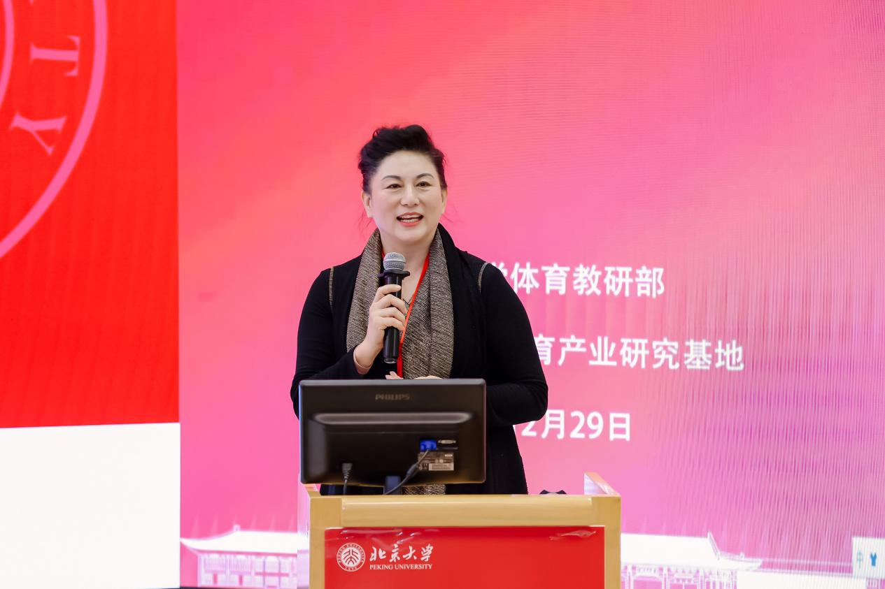 开幕式最后,北京大学国家体育产业研究基地执行主任张锐教授回顾了北京大学国家体育产业研究基地十六载的发展历程。北京大学国家体育产业研究基地自成立之日起便秉承起与国家命运、社稷兴衰同频共振的使命,紧跟时代议题。张锐教授还充满情怀地展望了基地2024年的未来发展规划,表示要在学术研究、教学课程和社会服务三方面联动继续做精、做优、做好体育产业。她还提出了“中国体育营销之夜”以及“智慧体育公园内容体系创设”等极具前瞻性的未来发展构想,并表示基地将持续关心青少年儿童的体育教育与健康发展,让基地为我国社会主义事业持续发光发热。