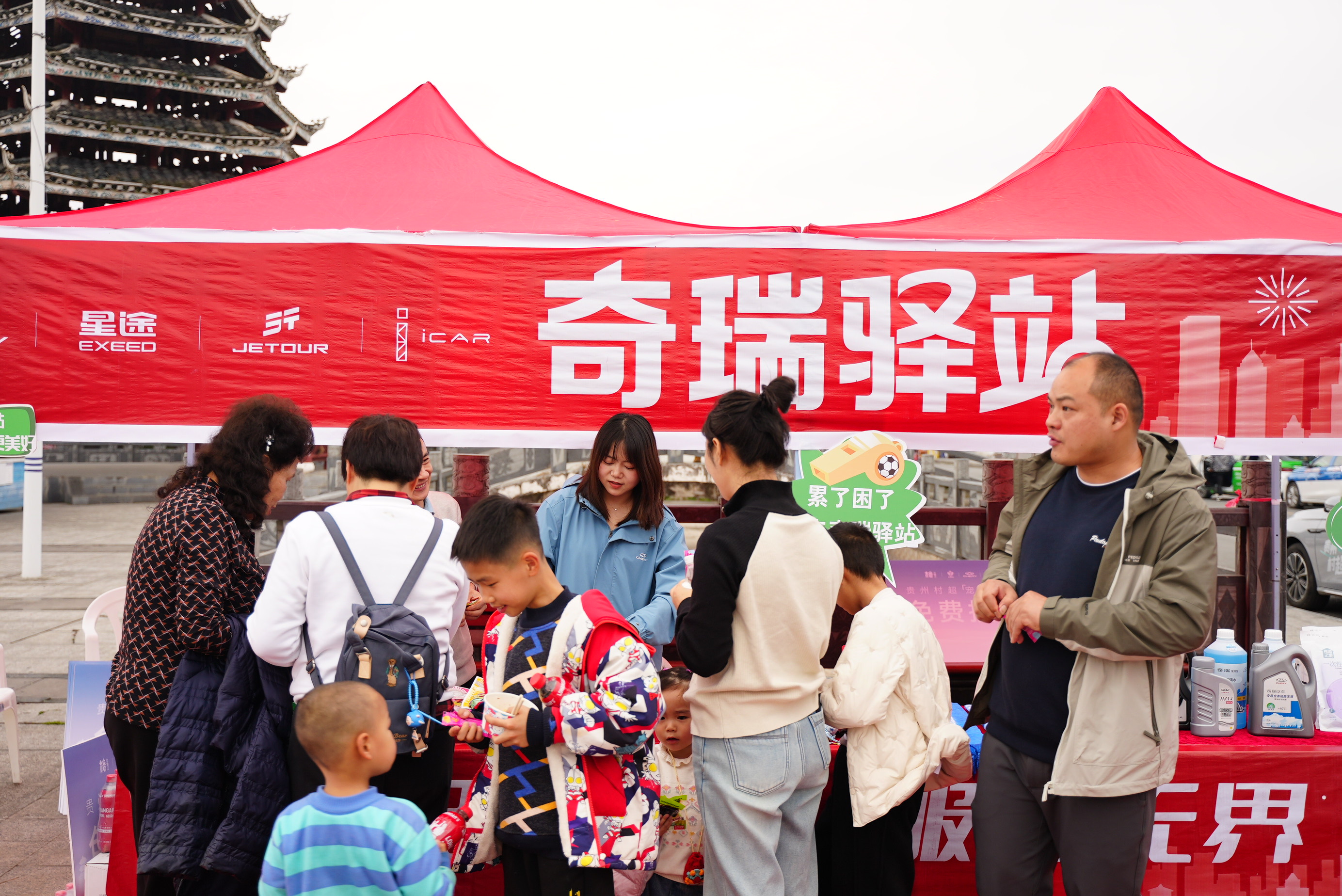 不仅如此,为让现场球迷更加方便欣赏热辣滚烫的最新赛事,奇瑞还特别在村超现场设立多处奇瑞驿站,免费为大家提供爱心干粮包、车辆补给和赛事指引等多项便民服务项目。除此之外,更有王牌主播天团身着民族服饰惊艳亮相,现场开启直播,带领大家一起“云感受”村超的火热氛围和独具魅力的榕江风土人情。