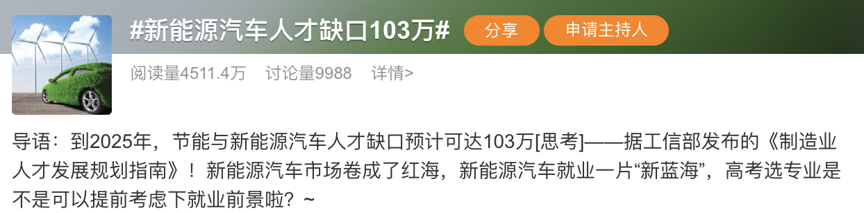根据教育部、人社部、工信部发布的《制造业人才发展规划指南》,预测到2025年我国新能源汽车人才缺口达103万。但车企们的裁员浪潮却与《指南》背道而驰引发争议,实际上,车企陷入“裁员潮”和“用人慌”的矛盾之中并非表象看到的“增与减”,更多是源于“牛人”与“创新”的稀缺,汽车工业已经发展完善饱和,最稀缺的是“有创新精神和灵魂的年轻人”,他们才是车企对于人才的渴望。