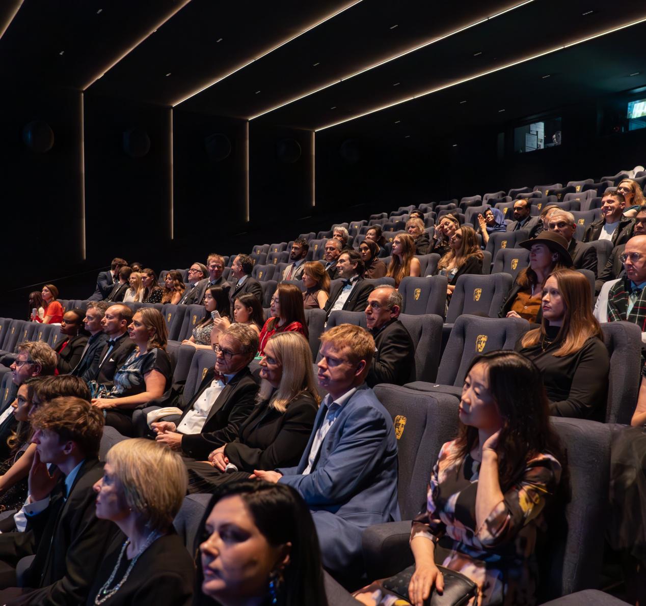 图为本届电影奖在英国电影和电视艺术学院(BAFTA)举办,中国人文纪录片《云朵之上》现场放映。