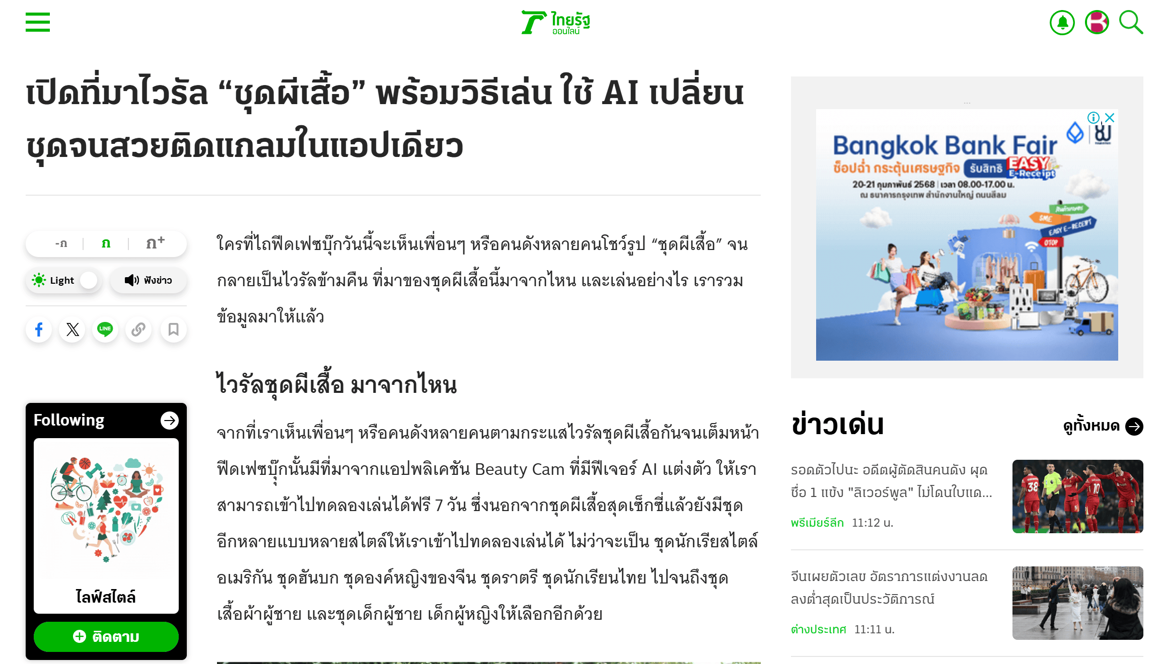 Thairath(泰国日报)报道美颜相机BeautyCam