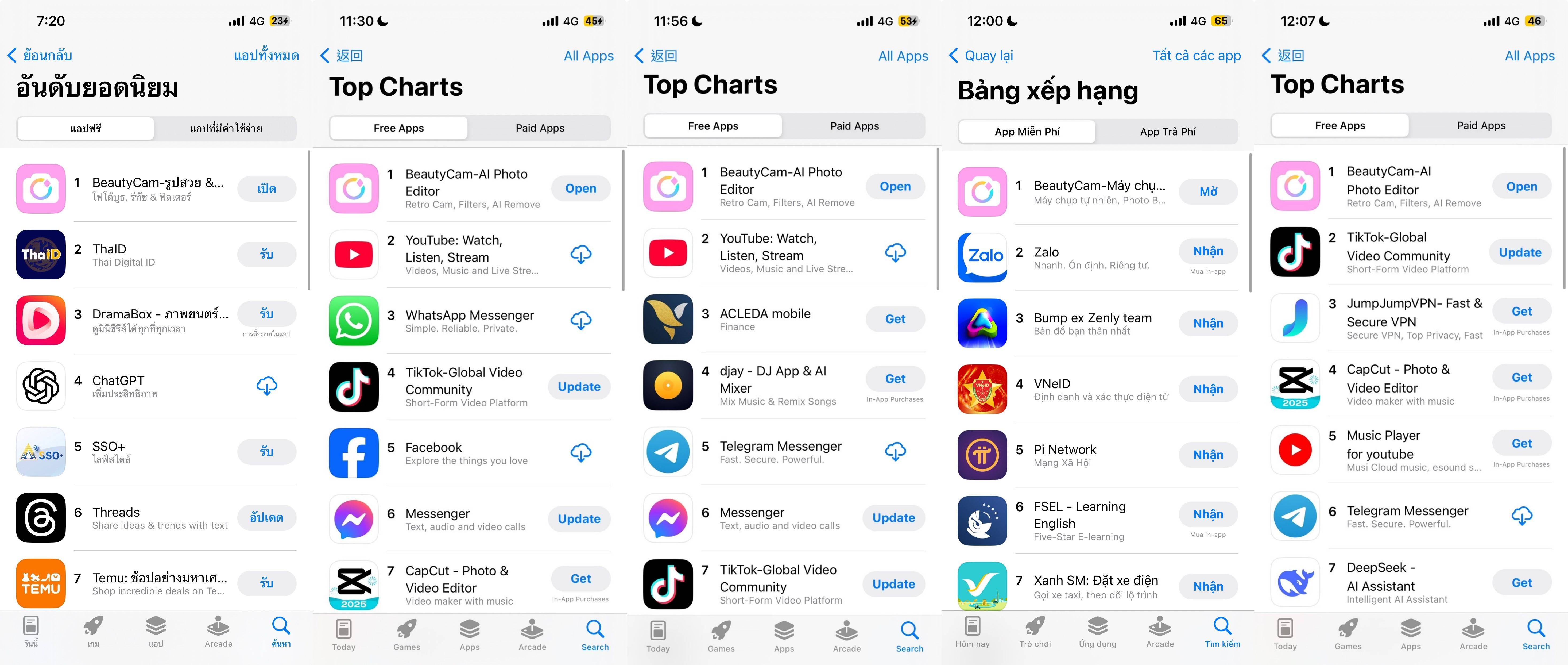 美颜相机BeautyCam斩获泰国、老挝、柬埔寨、越南、缅甸App Store总榜第一