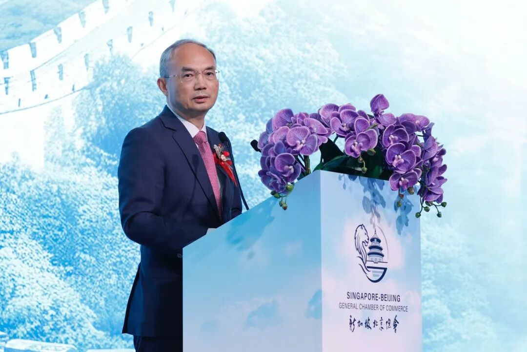 曹忠明大使在致辞中指出,新加坡北京总会的成立正当其时。“今年正值中新建交35周年,两国关系已提升至‘全方位高质量的前瞻性伙伴关系’。总会将为两地企业‘走出去’和‘引进来’搭建重要桥梁。”他进一步表示,新加坡北京总会致力于构建一个高效务实的沟通平台,帮助两地企业更好地理解对方市场,促进投资贸易便利化,同时推动民间文化交流与互鉴。
