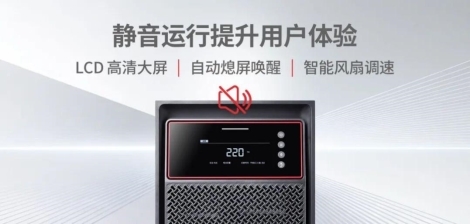 全新的 LCD 高清大屏,实时展示关键运行参数,操作更直观,并且支持自动熄屏和唤醒,减少光污染。智能风扇调速,在轻载下噪音低于 50dB,将为用户营造安静的工作环境。