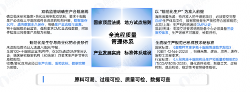 首先,《生物医学新技术临床研究和临床转化应用管理条例》、《血液系统类医疗服务价格项目立项指南(试行)》等监管政策明确临床研究、技术应用、药品上市全流程刚性规范,让干细胞临床应用有法可依、全程可控、安全可溯,打破大众对行业乱象的顾虑,使其能享受到更安全合规的干细胞服务。